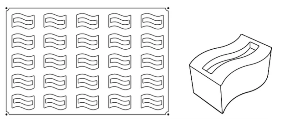 Dimnesions: Pavoflex Ondina silicone mold mm 80x45x40 HVol. 130 ml 25 impressions